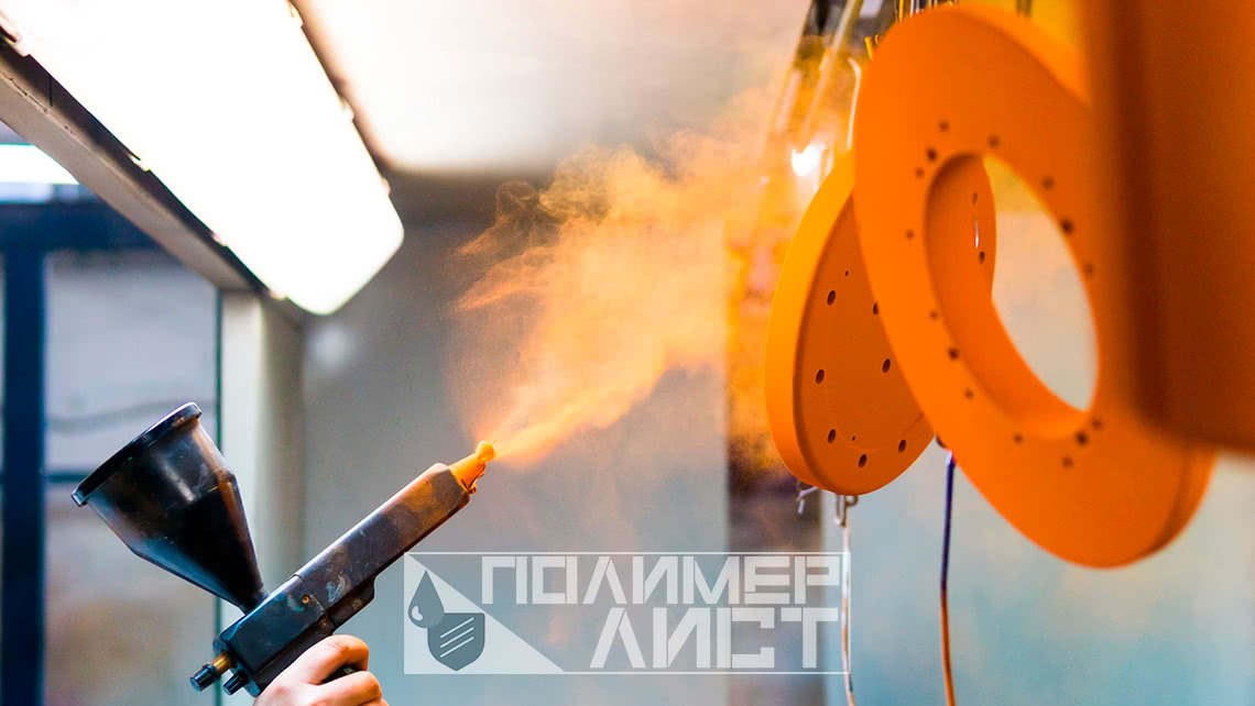 Вкратце для понимания, то полимерное покрытие металла представляет собой достаточно тонкий слой полимерных порошков, которые для начала наносят на поверхность окрашиваемой конструкции, а в дальнейшем подвергают запеканию (полимеризации) в специальной печи при создании нужной температуры.